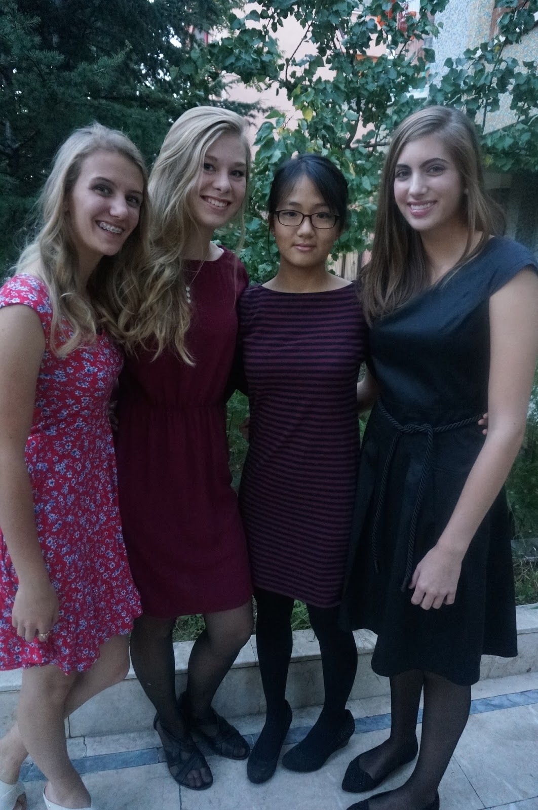 We had a wonderful meal. Then I walked over to the mall with her group of buddies who had all Gotten Ready. I told her she could pick out one item for me to buy her. Her friend piped up, "An Iphone!" Sweet girl just wanted a $10 sweater. We walked into the little shop, which was manned by two early-teen boys. When they saw those girls who had all Gotten Ready, they blushed, giggled, and tried to speak French to them. We answered in Turkish that we are American. They were so flustered, they couldn't even figure out how to run my credit card through. I decided cash might be a better option.